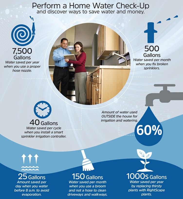 Toilet flushing accounts for nearly 30 percent of water use inside the home. With a high-efficiency toilet, you could save more than 8,000 gallons of water per year. If you aren’t ready to make the switch to a high-efficiency toilet, try lowering the water level inside your toilet to save water. Rebates are also available to help offset the cost.